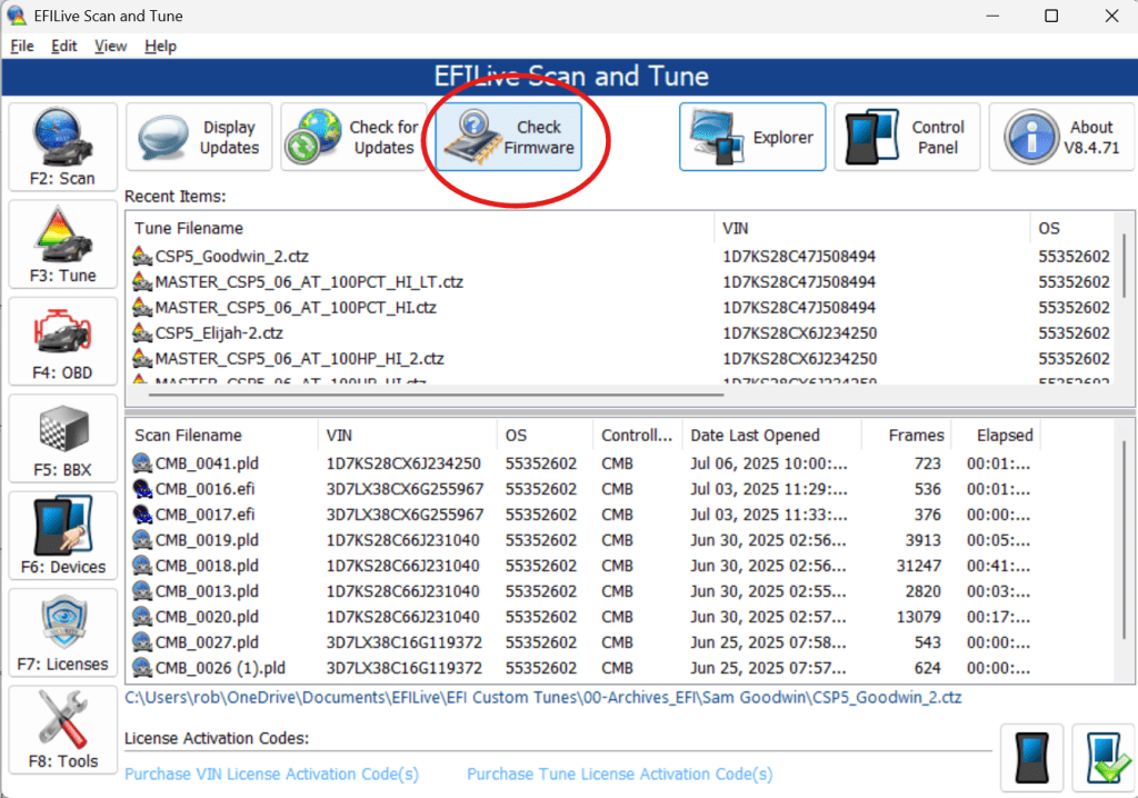 - Hookup your autocal/flashscan to your computer via USB and press the “Check Firmware Button, if firmware is up to date go to the next step. If not, update the firmware and then proceed:
