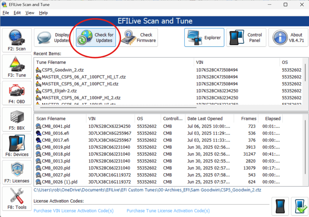 - Open EFILive and Update press the check for updates button to make sure you are on the latest version. If not, follow the update instructions, then restart EFILive: